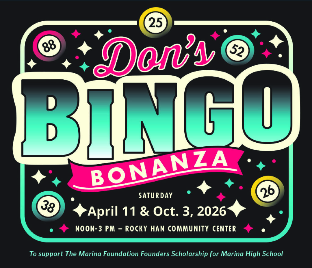• Don’s Bingo Bonanza! is a fundraiser to support the Marina Founders Scholarship for graduating Marina High School seniors